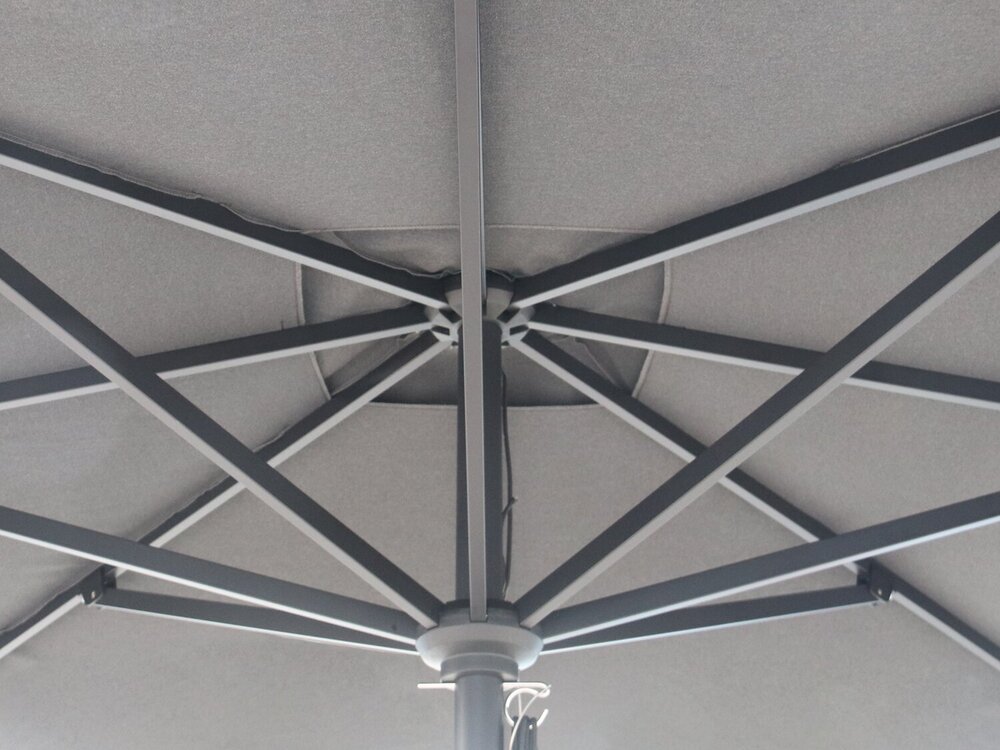 Dieser 3x3 Meter große Sonnenschirm ist inklusive Fuß.