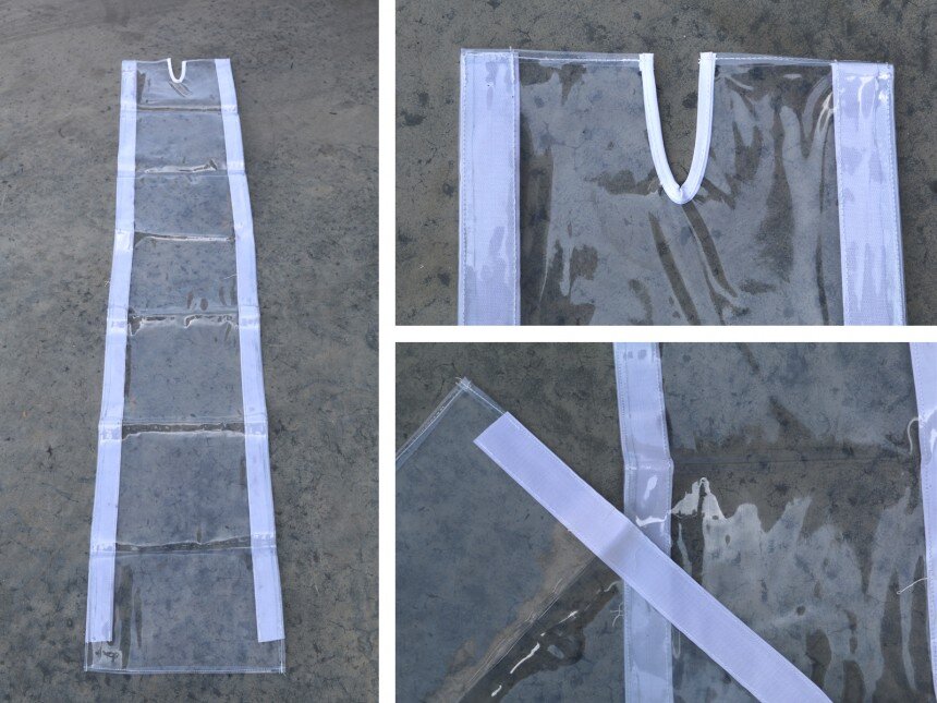 Dankzij deze transparante strook maakt u een nette verbinding tussen 2 vouwtenten. U verbergt er het metalen frame mee en dit op een professionele manier. Bovenaan de strook is er een uitsparing voorzien voor een regengoot. Vastmaken gebeurt via 2 sterke velcro banden.