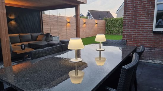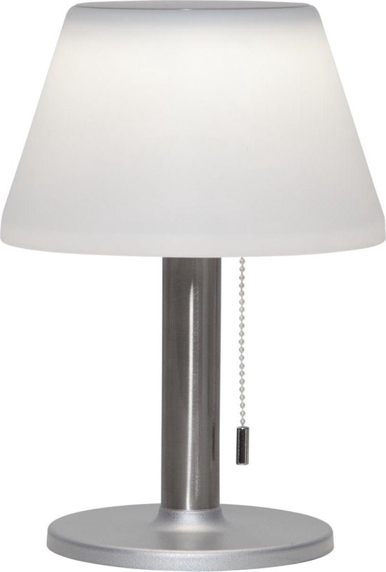Decoratieve solar tafellamp voor buiten. Of het nu voor het balkon, het terras of in een gezellige tuinhoek is, deze LED tafellamp geeft warm wit licht met instelbare helderheidsniveaus tot 8 uur.