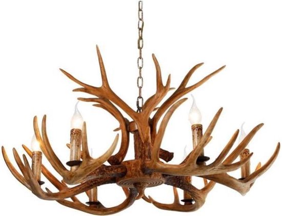 Hele gave gewei kroonluchter met 6 lichtpunten die volledig gemaakt is van imitatie herten geweien.
