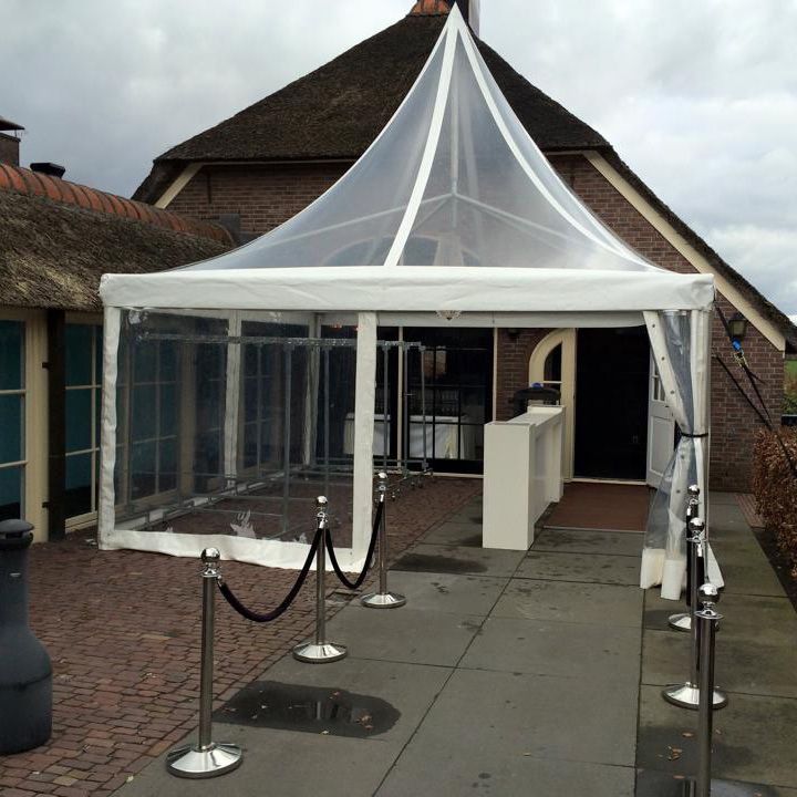 Deze pagode van 5x5 meter heeft een transparant dak.
