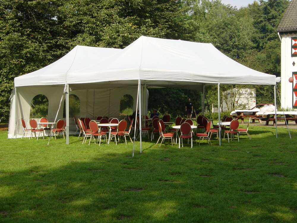 Partytenten worden geleverd inclusief haringen en spanbanden maar zonder gewichten en zijwanden, deze kunt u eventueel bij huren.